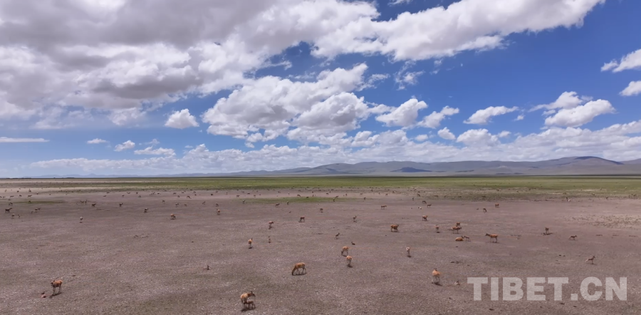 西藏那曲市申扎縣境內(nèi)棲息的藏羚羊群