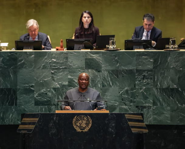 3月25日投票前,加納總統(tǒng)約翰·德拉馬尼·馬哈馬在紐約聯(lián)合國大會發(fā)表講話。