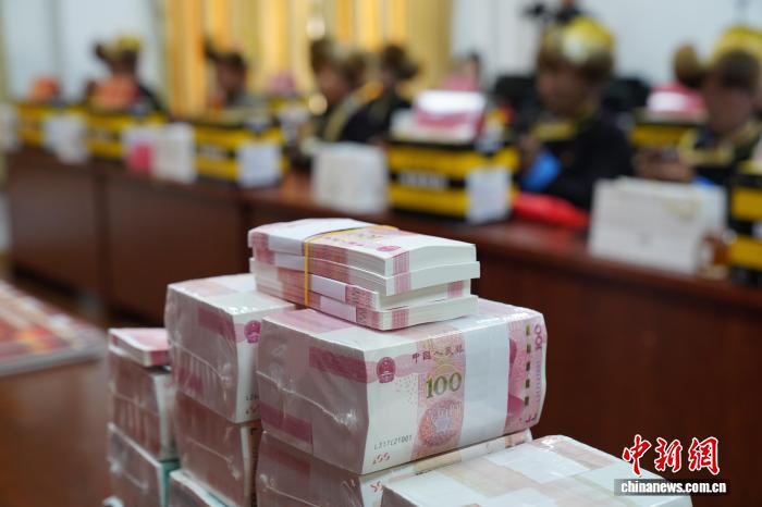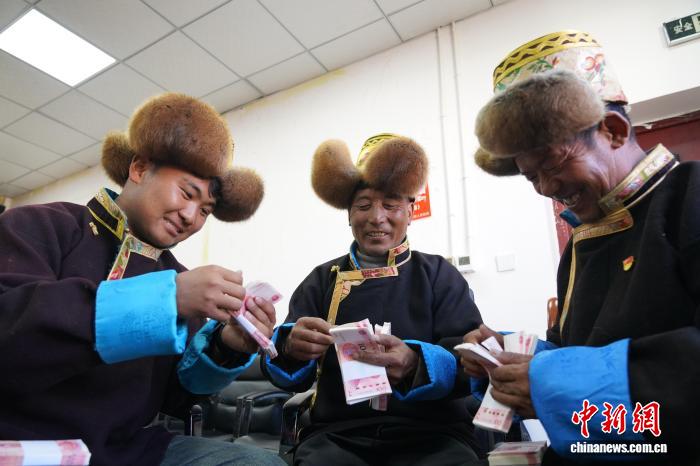 圖為在分紅現(xiàn)場(chǎng),村民數(shù)錢。曲杰 攝