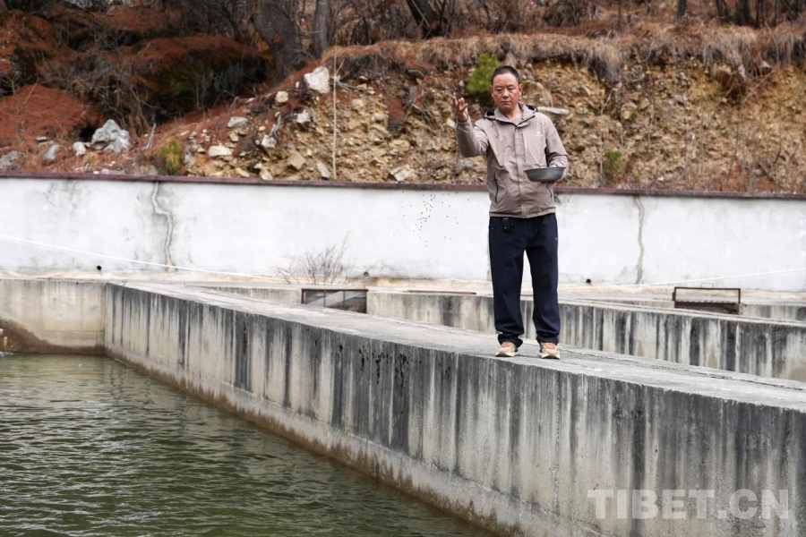 與如丙崗村相距十余公里的下司馬鎮(zhèn)下司馬社區(qū),亞東河穿境而過,這里是西藏自治區(qū)二級野生保護動物亞東鮭魚的生長家園。如今,在下司馬社區(qū)鮭魚養(yǎng)殖專業(yè)合作社的養(yǎng)殖池里,成群的亞東鮭魚在水中穿梭,一池池活水真正變成了帶動群眾增收的“致富水”,這背后,離不開李喜軍和合作社社員們的努力。