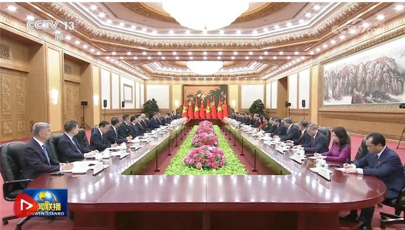 蘇林表示,這是我當(dāng)選越南國家主席后首次出訪,也正值習(xí)近平總書記、國家主席去年對越進行歷史性訪問一周年,充分反映了總書記同志所說的“鄰里越走越親”。越方感謝中國共產(chǎn)黨、政府和人民對越共十四大提供的重要政治支持,愿始終同中方賡續(xù)傳統(tǒng)友誼,推動兩國全面戰(zhàn)略合作伙伴關(guān)系和具有戰(zhàn)略意義的命運共同體不斷發(fā)展。越方祝賀中國勝利完成“十四五”規(guī)劃并取得歷史性成就,相信中方將順利實施“十五五”規(guī)劃,不斷推進高質(zhì)量發(fā)展和社會主義現(xiàn)代化建設(shè),如期實現(xiàn)第二個百年奮斗目標(biāo),并成為世界和平發(fā)展的支柱力量和首要動力。