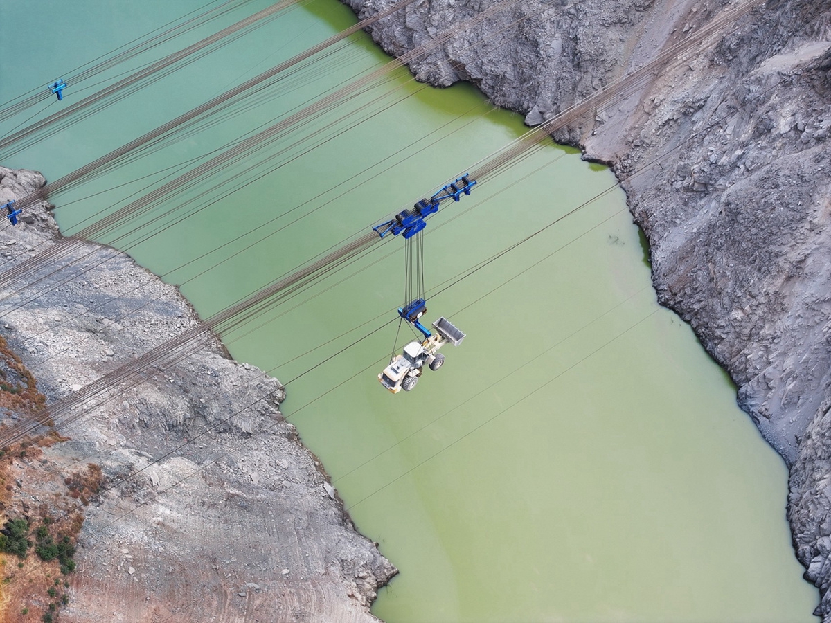 為適配復(fù)雜險峻地形,項目團(tuán)隊精心構(gòu)建了“3噸臨時索道+15噸輔助纜索吊+60噸主纜索吊”三級漸進(jìn)式架設(shè)的全鏈條吊裝體系。