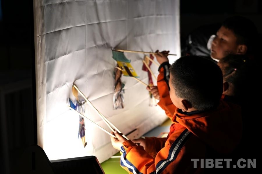 孩子們用自己親手制作的皮影表演