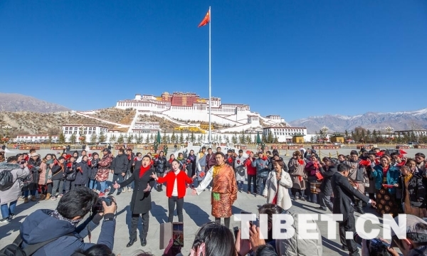2018年12月31日,年終歲末,西藏自治區(qū)拉薩市布達(dá)拉宮廣場上演了《我和我的祖國》快閃活動(dòng)。來自西藏的高校青年學(xué)生和市民群眾向祖國深情告白,用快閃的方式慶祝新中國成立70周年。 [詳細(xì)] -