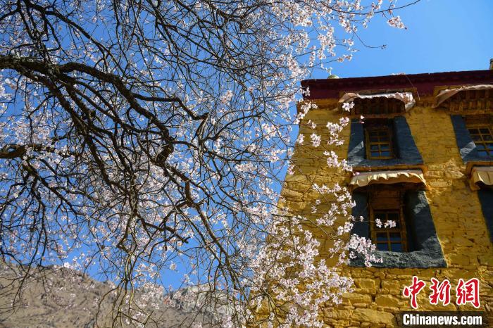 圖為布達拉宮腳下的櫻花。貢嘎來松 攝