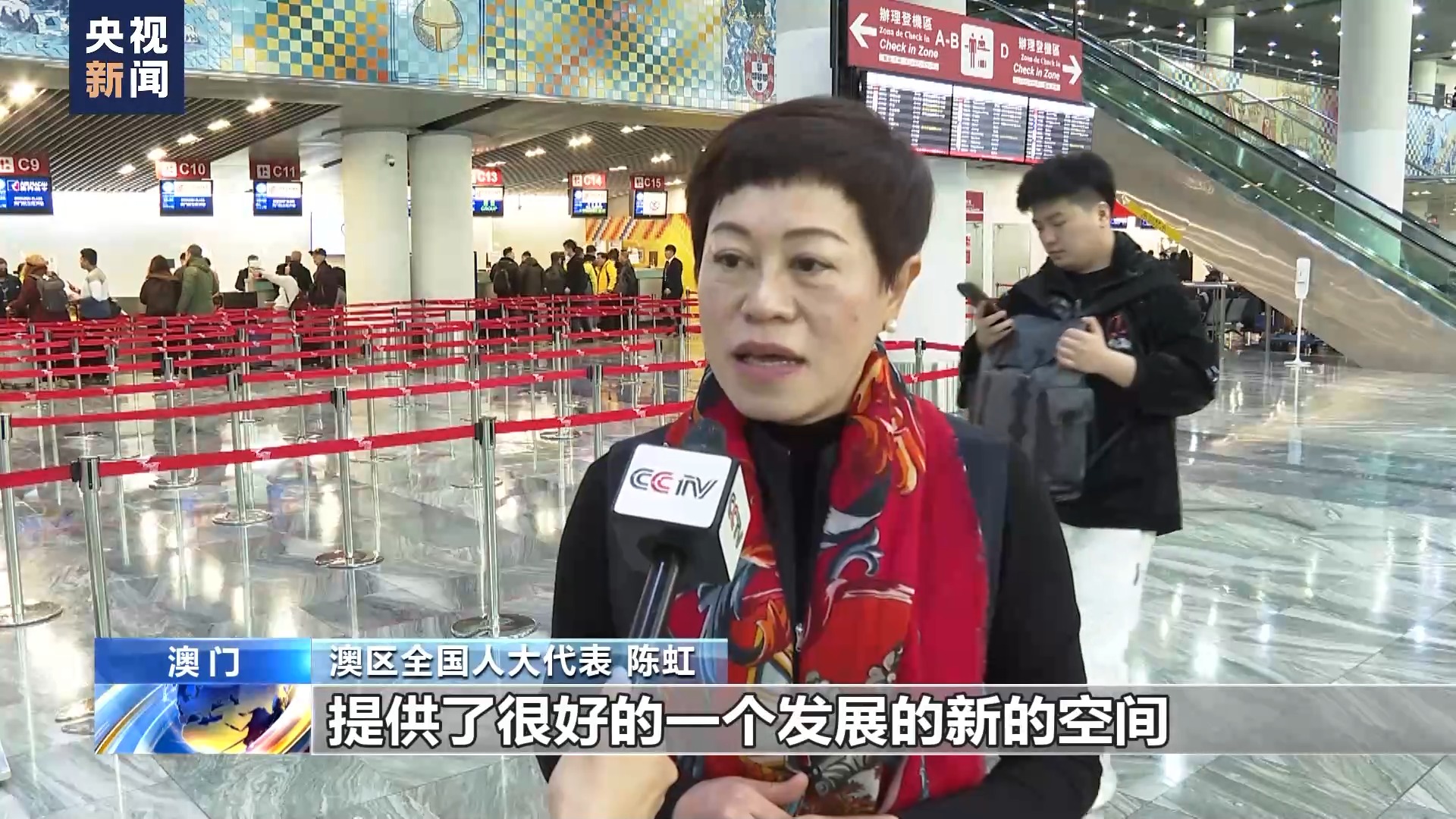 澳區(qū)全國人大代表 陳虹:國家給了澳門很好的發(fā)展的機(jī)遇跟平臺,提供了很好的一個(gè)發(fā)展的新的空間,特別是深合區(qū),粵港澳大灣區(qū),為澳門居民更好地融入國家發(fā)展大局提供了這么好的空間。