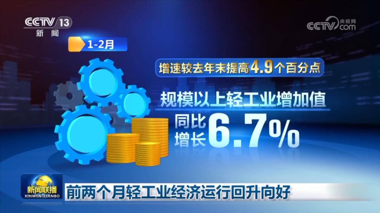 輕工業(yè)生產(chǎn)呈現(xiàn)出較快增長(zhǎng)態(tài)勢(shì)。前兩個(gè)月,規(guī)模以上輕工業(yè)增加值同比增長(zhǎng)6.7%,增速較去年末提高4.9個(gè)百分點(diǎn)。其中,造紙、塑料制品、家用電器、家具等制造業(yè)增加值增速超過10%。
