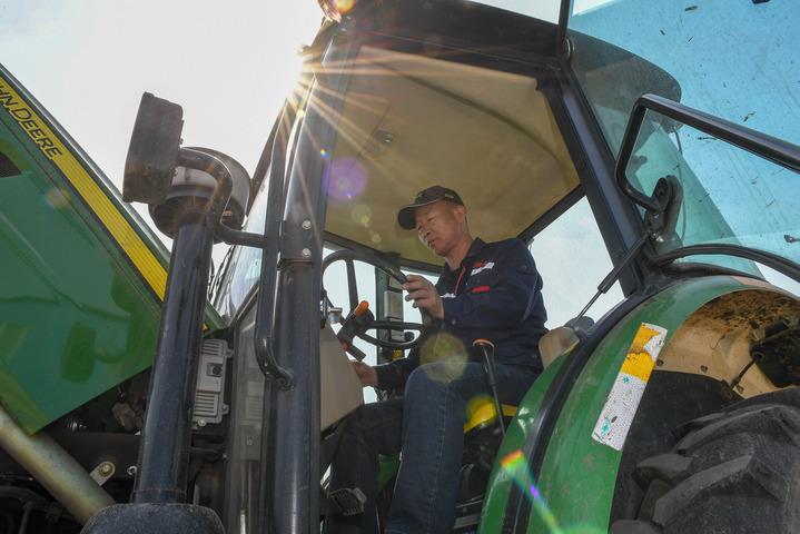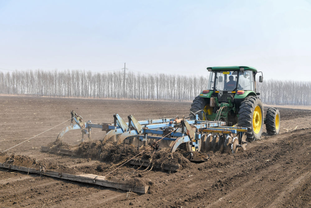 4月2日,在吉林省公主嶺市范家屯鎮(zhèn)乾程農(nóng)民專(zhuān)業(yè)合作社,農(nóng)民駕駛農(nóng)機(jī)整理耕地。