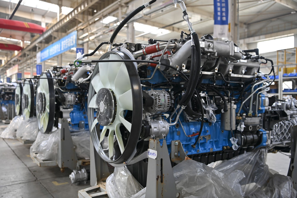 這是在位于山西省晉中市榆次區(qū)的山西新能源汽車工業(yè)有限公司(吉利晉中基地)拍攝的甲醇發(fā)動機(jī)(4月1日攝)。新華社記者 楊晨光 攝