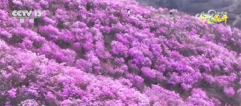 這里是遼寧省鞍山市岫巖滿族自治縣的黃嶺村,映山紅迎春綻放,粉紅色的花海綿延近十里,在山巒中鋪開(kāi),燦若云霞。一團(tuán)團(tuán)、一簇簇色彩艷麗的花朵,與高山叢林交相輝映,蔚為壯觀。各方游客紛至沓來(lái),感受春日浪漫、定格美好瞬間。預(yù)計(jì)這里的花期將持續(xù)到4月底。
