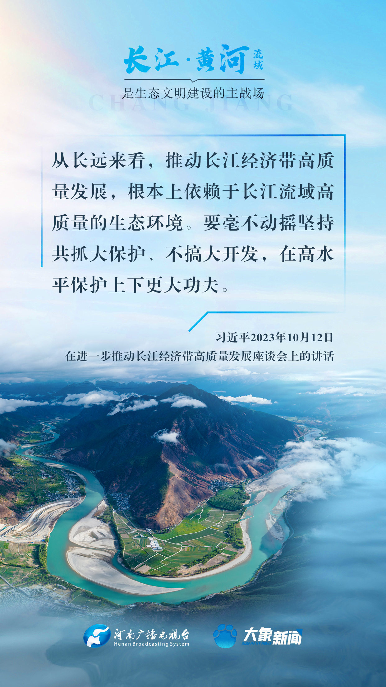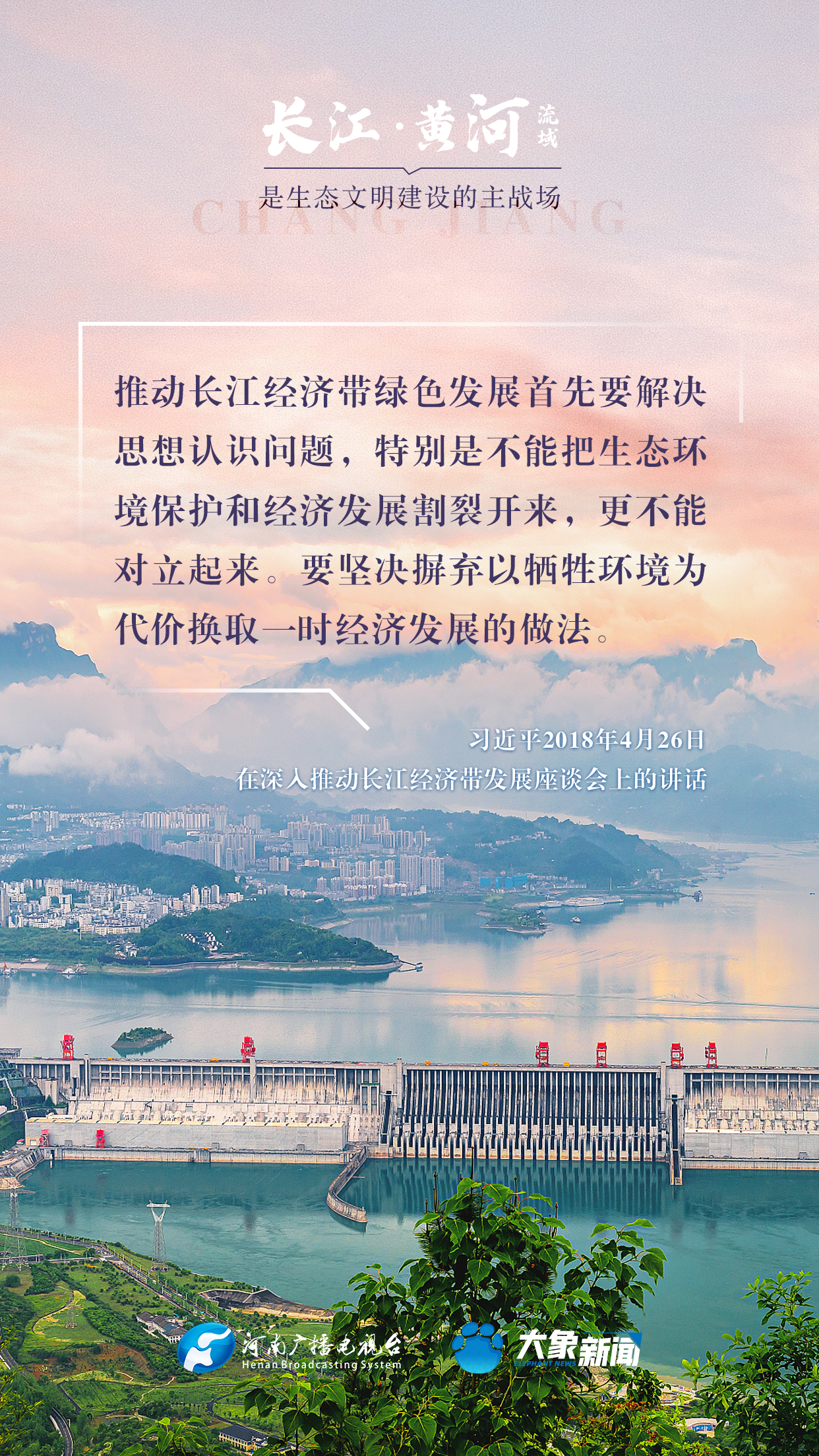 長江、黃河都是中華民族的母親河,習(xí)近平總書記高度重視長江、黃河的生態(tài)保護(hù),多次諄諄告誡:“保護(hù)母親河是事關(guān)中華民族偉大復(fù)興和永續(xù)發(fā)展的千秋大計(jì)”“長江、黃河流域是生態(tài)文明建設(shè)的主戰(zhàn)場”等等。在第55個(gè)世界地球日到來之際,大象新聞與您一起,感受總書記對(duì)母親河的深厚情懷。