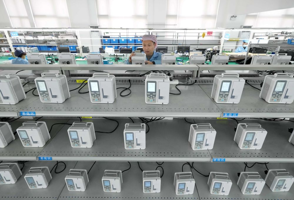 工人在河北省秦皇島經(jīng)濟(jì)技術(shù)開(kāi)發(fā)區(qū)一家醫(yī)療設(shè)備企業(yè)的生產(chǎn)車間工作(2024年1月10日攝)。據(jù)介紹,目前該區(qū)健康管理、生物工程、醫(yī)療器械等生命健康領(lǐng)域的企業(yè)達(dá)30多家。新華社記者 楊世堯 攝