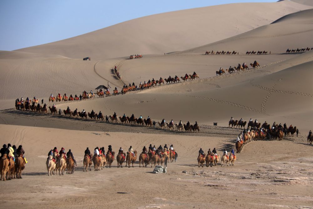 2024年春節(jié)迎來(lái)“8+1”假期,民眾出游熱情高漲,各地景區(qū)景點(diǎn)迎來(lái)參觀熱潮,文旅市場(chǎng)實(shí)現(xiàn)“開(kāi)門紅”。這是游客在甘肅省敦煌市鳴沙山月牙泉景區(qū)游覽(2024年2月14日攝)。新華社發(fā)(張曉亮 攝)