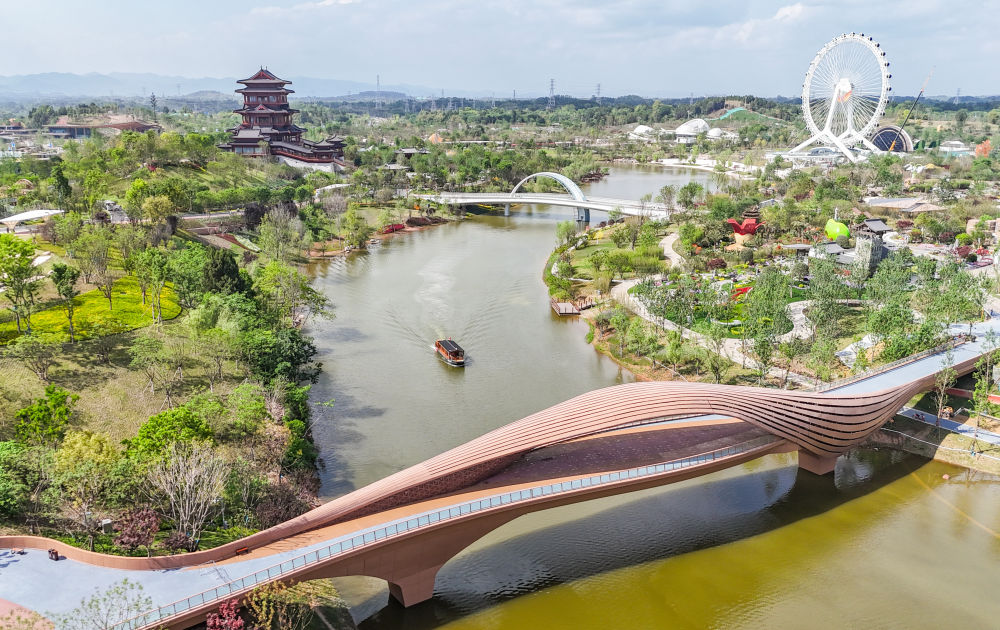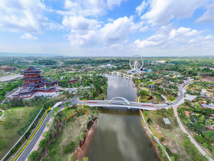 這是2024年4月23日拍攝的成都世園會(huì)郫都分會(huì)場(chǎng)(無(wú)人機(jī)照片)。新華社記者 王曦 攝