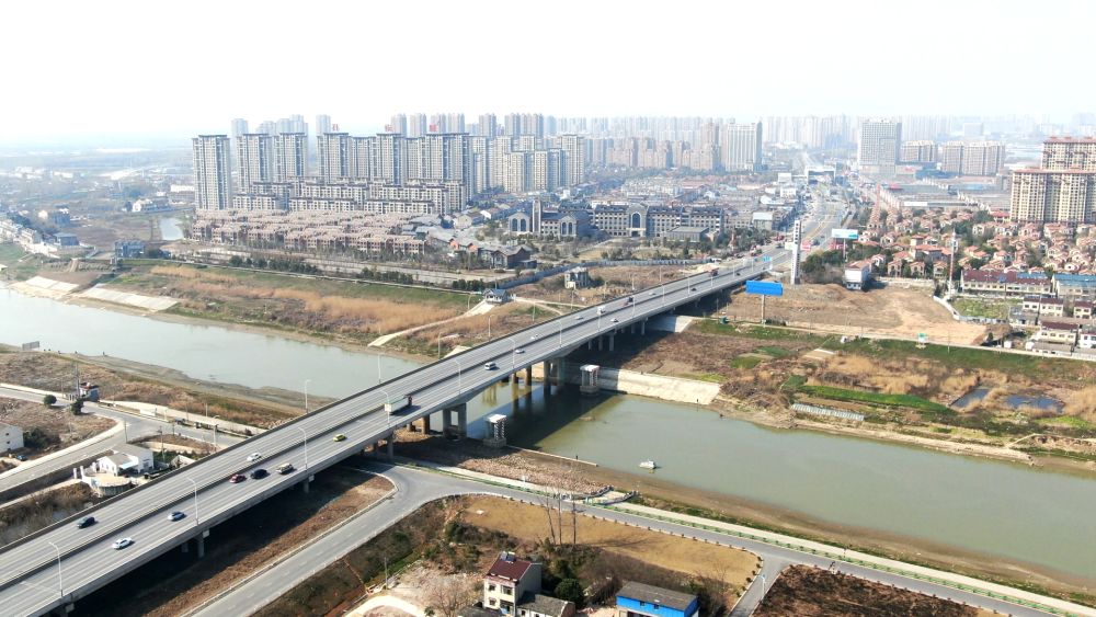 這是連接來(lái)安縣汊河鎮(zhèn)和南京市江北新區(qū)的汊河大橋(2023年3月2日攝,無(wú)人機(jī)照片)。新華社發(fā)(孫駿 攝)