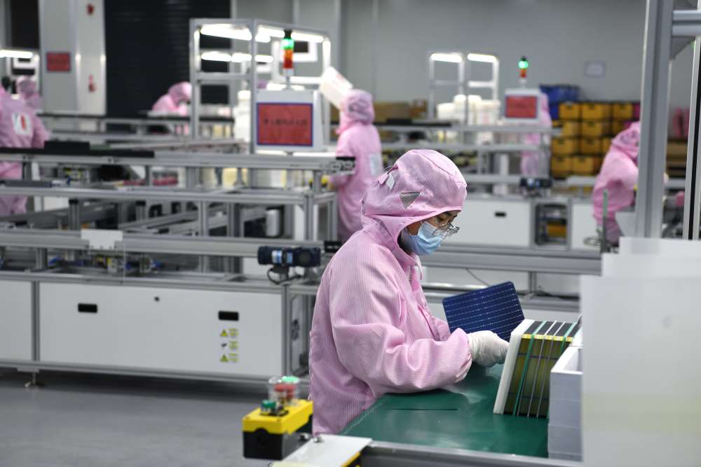 2023年3月1日,工作人員在“頂山—汊河”跨界一體化發(fā)展示范區(qū)的一家太陽(yáng)能電池片企業(yè)生產(chǎn)線上忙碌。新華社記者 劉軍喜 攝