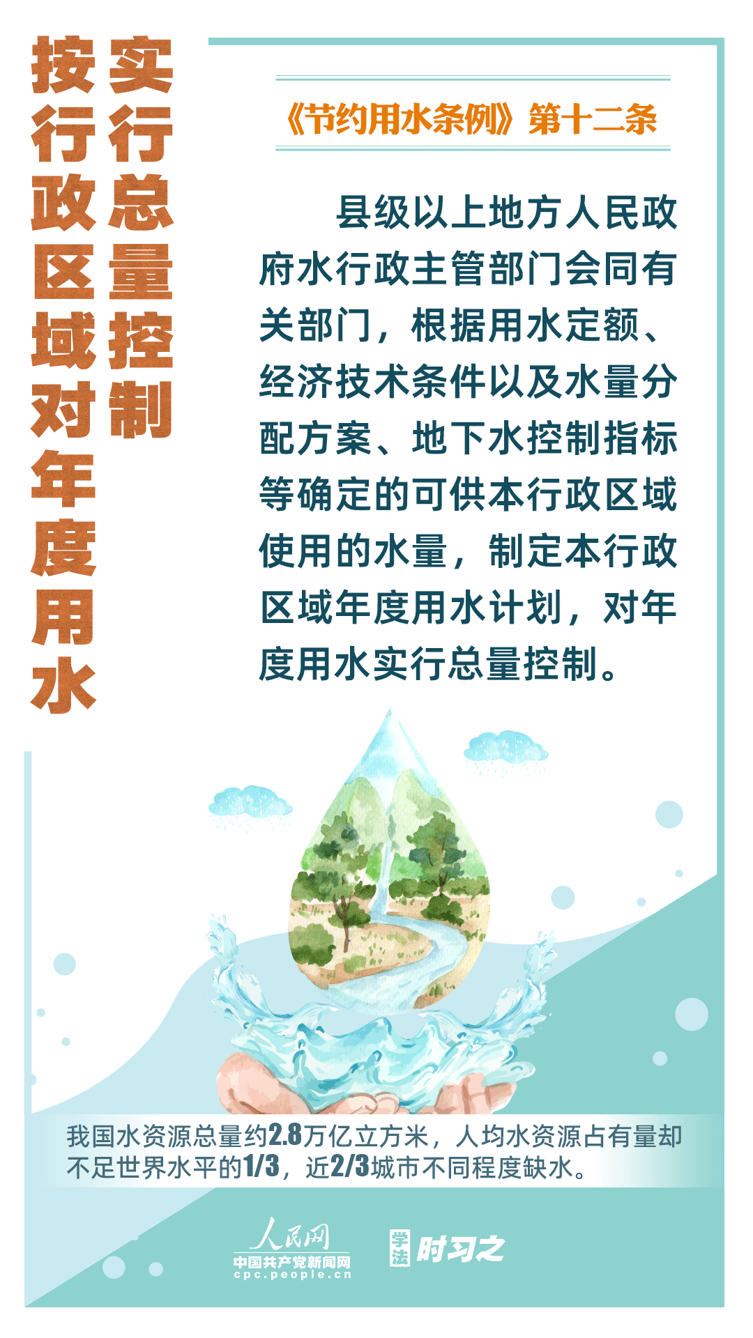《節(jié)約用水條例》(以下簡(jiǎn)稱《條例》)將于2024年5月1日起施行,這是我國(guó)首部節(jié)約用水行政法規(guī)。節(jié)約用水,是解決我國(guó)水資源短缺問題的根本措施,《條例》以水資源可持續(xù)利用為目標(biāo),建立健全節(jié)水制度政策體系,以法治方式和法治途徑實(shí)現(xiàn)水資源節(jié)約集約高效利用,促進(jìn)全社會(huì)節(jié)約用水。