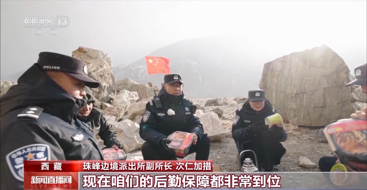 珠峰邊境派出所副所長(zhǎng) 次仁加措:這里風(fēng)是挺大的。但咱們有“法寶”,就是高原上的火鍋?,F(xiàn)在后勤保障非常到位,在野外哪個(gè)地方,吃頓熱乎飯已經(jīng)不是難事了。