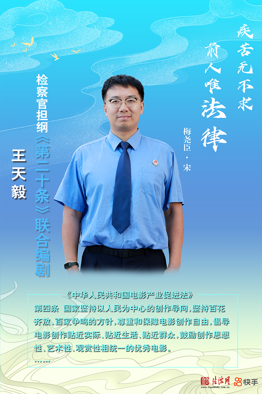 北京市朝陽區(qū)人民檢察院第四檢察部副主任王天毅作為聯(lián)合編劇,深度參與《第二十條》劇本創(chuàng)作。劇本中,涉及檢察官工作的內(nèi)容都由王天毅執(zhí)筆。《第二十條》是國內(nèi)首部聚焦“正當(dāng)防衛(wèi)”議題的法治題材影片,以藝術(shù)性的角度向觀眾闡明:“法不能向不法讓步”不是口號(hào)。