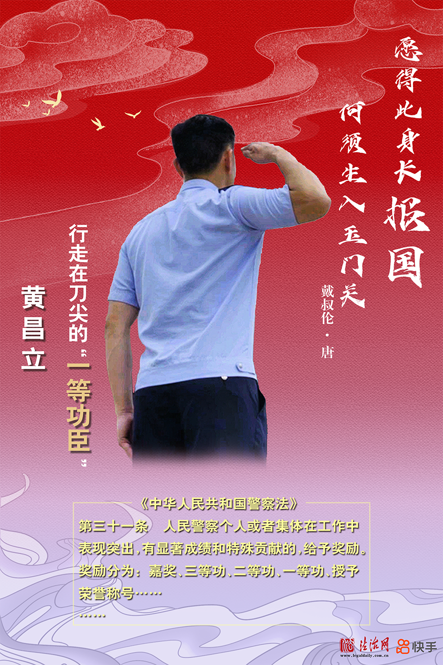 黃昌立受軍人父親影響,從小便向往軍警職業(yè)。2009年,他從警校畢業(yè),成為廣西出入境邊防檢查總站崇左邊境管理支隊(duì)的一員。他曾多次與帶槍毒販正面交鋒,直面毒販的刀刃和槍口。因工作成績突出,被評(píng)為一等功臣、全國公安系統(tǒng)二級(jí)英雄模范。