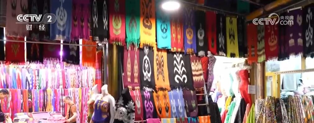 除此之外,本地布料市場(chǎng)也迎來(lái)了對(duì)艾特萊斯綢和定制成衣感興趣的游客。在這里,一套手工艾特萊斯綢的成衣價(jià)格從幾百元到上千元不等,店家還提供選布料、量身定做、成衣郵寄的一條龍服務(wù)。