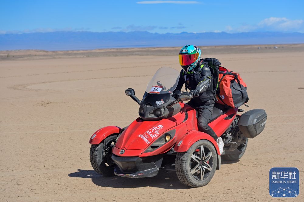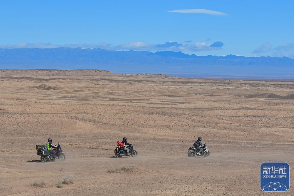在新疆克拉瑪依市烏爾禾區(qū),車(chē)友在無(wú)人區(qū)體驗(yàn)越野騎行(5月2日攝)。