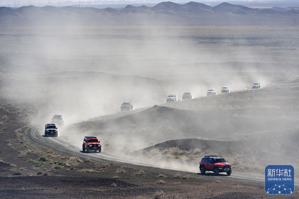 在新疆克拉瑪依市烏爾禾區(qū),車(chē)友駕駛越野車(chē)穿越無(wú)人區(qū)(5月2日攝)。