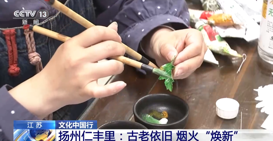 總臺央視記者 楊威:將傳統(tǒng)的非遺技能進(jìn)行適合現(xiàn)代生活的活化式展現(xiàn),是仁豐里非遺呈現(xiàn)的一大特色。像作為江蘇省級非遺的揚(yáng)州通草花制作技藝,已經(jīng)有了超過兩千年的歷史,以前只是專攻于宮廷,如今在這里您可以近距離地觀賞手藝人們現(xiàn)場制作的技巧,也可以親自上手做一個(gè)屬于自己的通草花帶回家。