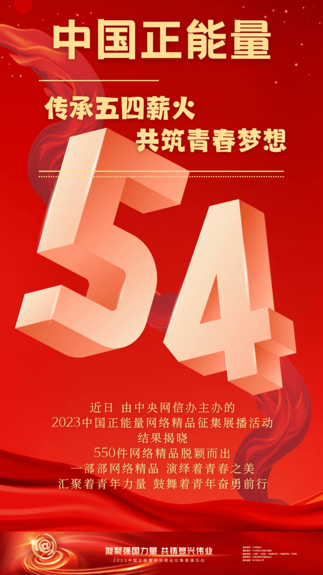 近日,由中央網(wǎng)信辦主辦的2023中國正能量網(wǎng)絡(luò)精品征集展播活動(dòng)結(jié)果揭曉,550件網(wǎng)絡(luò)精品脫穎而出。一部部網(wǎng)絡(luò)精品,演繹著青春之美,匯聚著青年力量,鼓舞著青年奮勇前行。