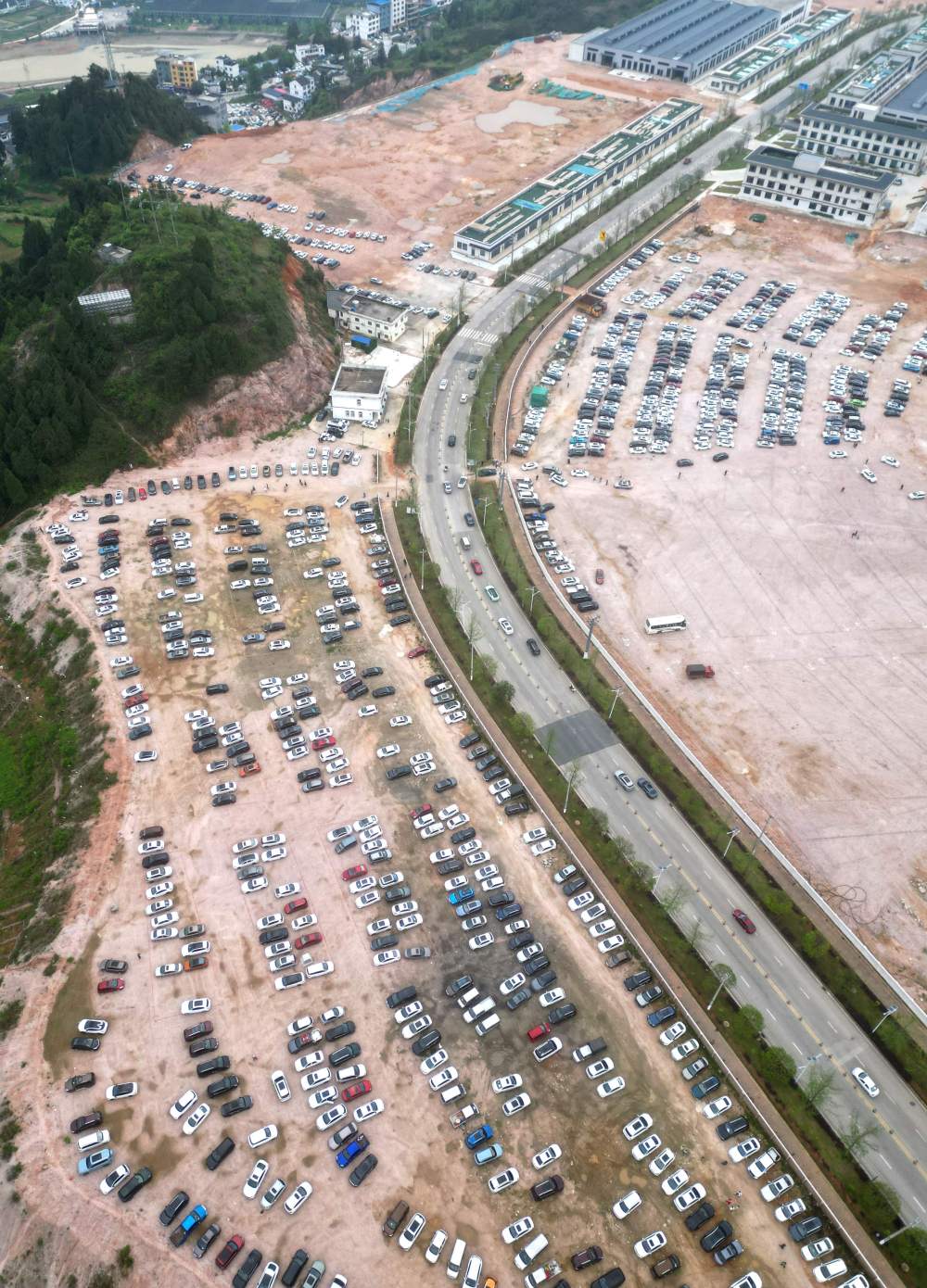 5月1日,游客車輛在貴州省黔東南苗族侗族自治州臺江縣臺盤村停車(無人機照片)。為了滿足外地游客觀看“村BA”的需求,當?shù)乩瞄e置空地規(guī)劃設置免費臨時停車場,增加車位7000余個,供游客免費停車。新華社發(fā)(余天英 攝)