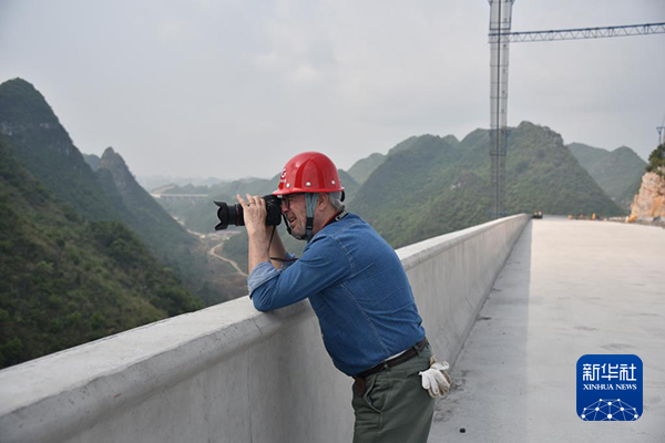 戴高樂(lè)多次來(lái)到中國(guó),這次是他第二次到貴州,主要參與近期由中國(guó)文化藝術(shù)發(fā)展促進(jìn)會(huì)、貴州交通建設(shè)集團(tuán)有限公司等聯(lián)合主辦的貴州大橋?qū)n}拍攝活動(dòng)。一路上,他和多位中國(guó)攝影師一起,深入多座在建的世界級(jí)大橋施工一線,感受“中國(guó)橋梁之魅”。