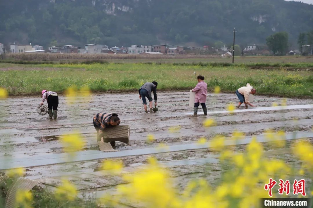 2024年3月20日,廣西柳州農戶在春分節(jié)氣搶抓時間開展育秧勞作。湯曉逵 攝