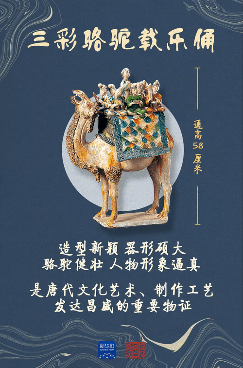 三彩駱駝?shì)d樂(lè)俑作為禁止出國(guó)(境)展覽的文物之一,吸引著眾多游客的目光。千年前的“流行天團(tuán)”如何穿越時(shí)光而來(lái)?他們又吟唱著什么?專家推測(cè)這支千年前的“巡回樂(lè)團(tuán)”,很可能正在表演流行于唐開元天寶年間的“胡部新聲”。