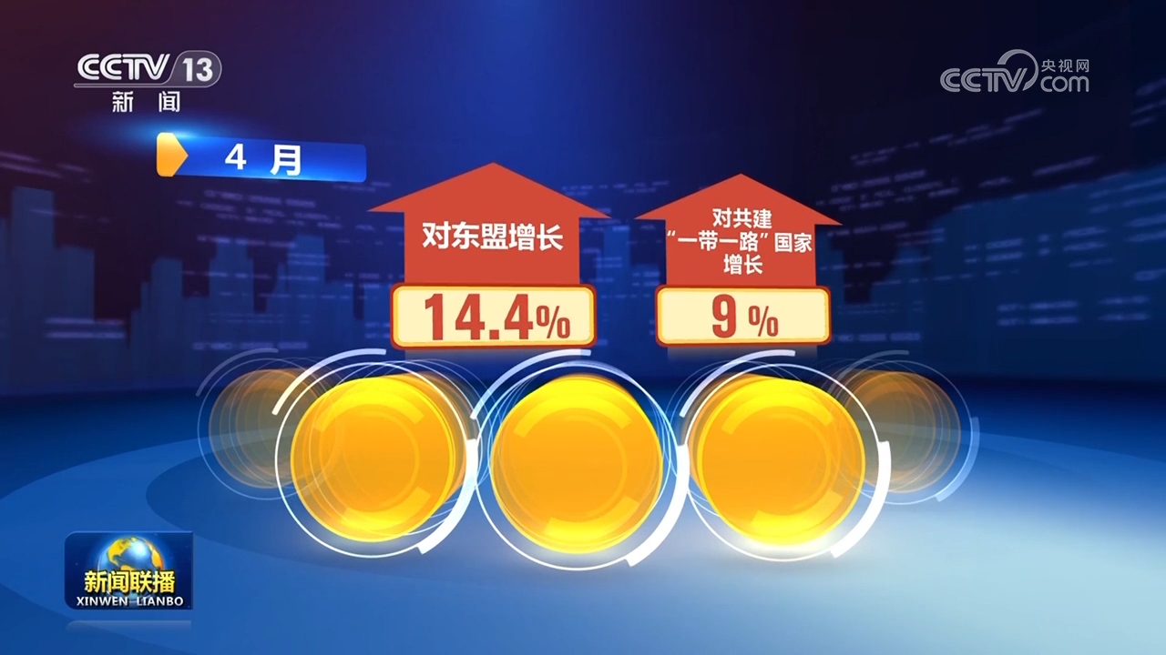 從市場看,我國對傳統(tǒng)和新興市場的貿(mào)易都呈現(xiàn)出增長態(tài)勢。4月,受庫存消化、需求恢復(fù)等因素帶動,中國對傳統(tǒng)市場進出口由降轉(zhuǎn)增,其中,對歐盟增長3.3%,對美國增長6.2%。與此同時,對新興市場進出口繼續(xù)保持較高增速,對東盟、共建“一帶一路”國家分別增長14.4%、9%。