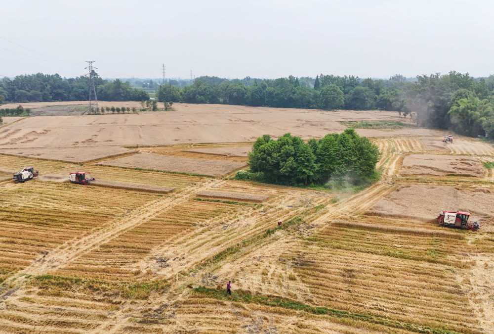 從五月初到六月初,除了傳統(tǒng)意義上的搶收小麥和搶種水稻的“雙搶”,舒星宇還要忙著統(tǒng)籌安排拖拉機(jī)翻耕,組織無(wú)人機(jī)飛手打藥,夜里在庫(kù)房安排收回來(lái)的小麥烘干,還要將最后一批次育好的秧苗及時(shí)送到種糧大戶手中……