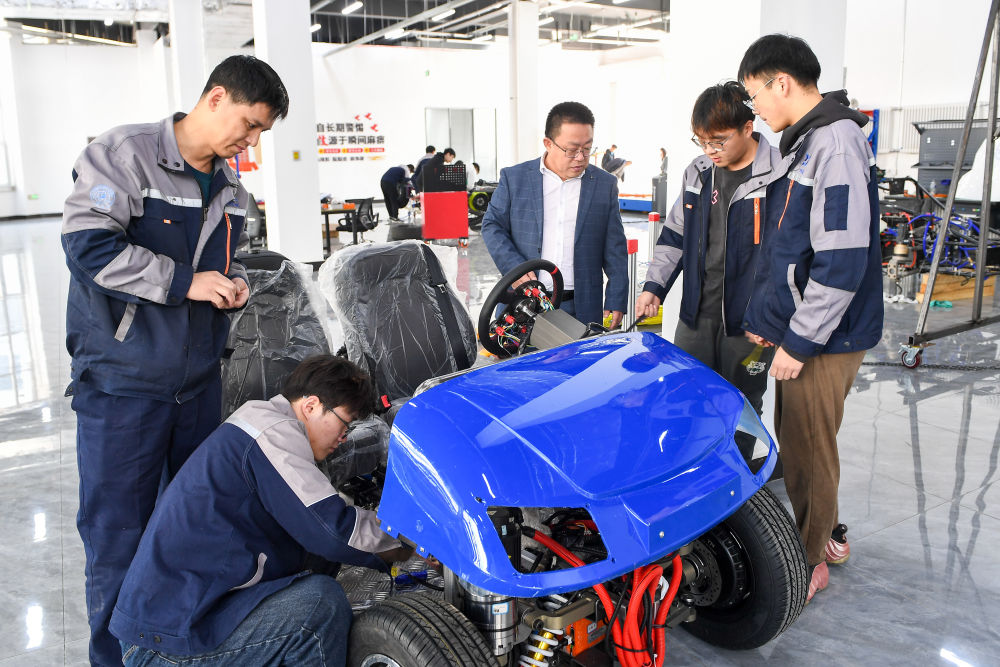 2024年3月13日,長春市麥迪克智行汽車科技有限公司,吉林大學(xué)汽車工程學(xué)院教授靳立強(右三)與同事檢查智能底盤樣車。新華社記者 張楠 攝