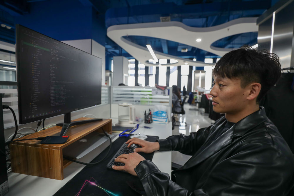 2024年4月18日,在哈爾濱工業(yè)大學(xué)人工智能研究院有限公司,科研人員在進行數(shù)據(jù)編程。新華社記者 張濤 攝