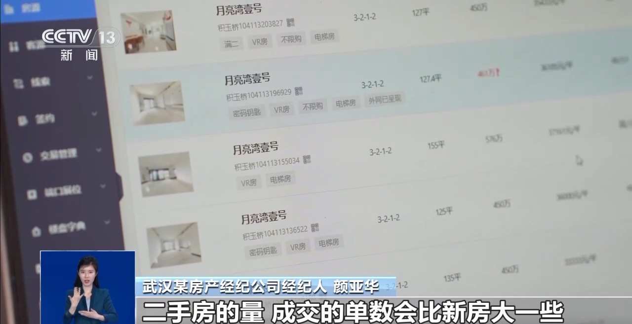 武漢某房產(chǎn)經(jīng)紀(jì)公司經(jīng)紀(jì)人 顏亞華:按成交量來說,二手房成交的單數(shù)會(huì)比新房大一些,因?yàn)槎址康膯蝺r(jià)可能會(huì)更低一點(diǎn)。