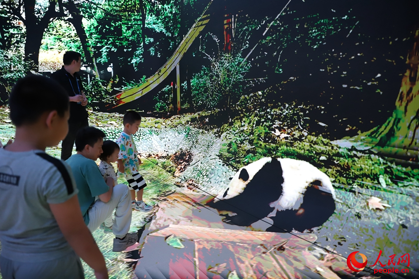 四川展區(qū),XR沉浸式體驗空間讓觀眾“走進”大熊貓基地。人民網(wǎng) 劉森君攝