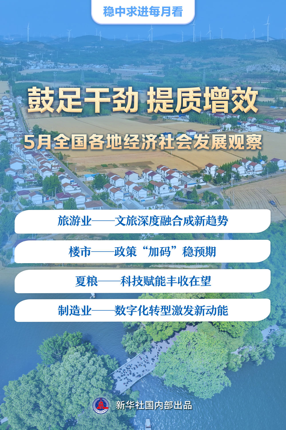 春歸夏至,萬物生長。文旅融合向“深”挺進(jìn),樓市政策優(yōu)化調(diào)整,夏收以科技賦能,制造業(yè)數(shù)字化轉(zhuǎn)型提速……提質(zhì)增效成為5月全國各地經(jīng)濟(jì)社會(huì)發(fā)展的突出特點(diǎn)。