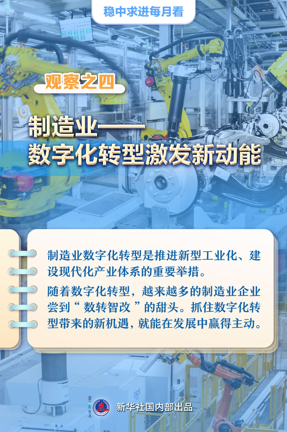 【記者觀察】制造業(yè)數(shù)字化轉(zhuǎn)型是推進(jìn)新型工業(yè)化、建設(shè)現(xiàn)代化產(chǎn)業(yè)體系的重要舉措。隨著數(shù)字化轉(zhuǎn)型,越來越多的制造業(yè)企業(yè)嘗到“數(shù)轉(zhuǎn)智改”的甜頭。抓住數(shù)字化轉(zhuǎn)型帶來的新機(jī)遇,就能在發(fā)展中贏得主動(dòng)。
