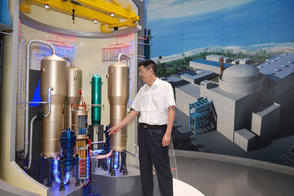 5月24日,在位于成都的中國核動力研究設計院內(nèi),鐘元章在介紹“華龍一號”模型。