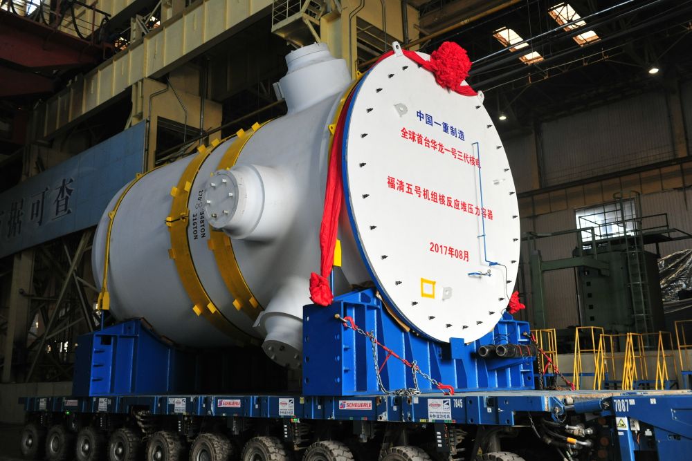 2017年8月,全球首臺“華龍一號”三代核電——福清五號機組反應堆壓力容器準備進行吊裝(資料照片)。