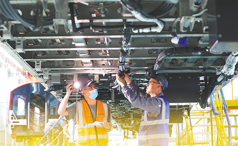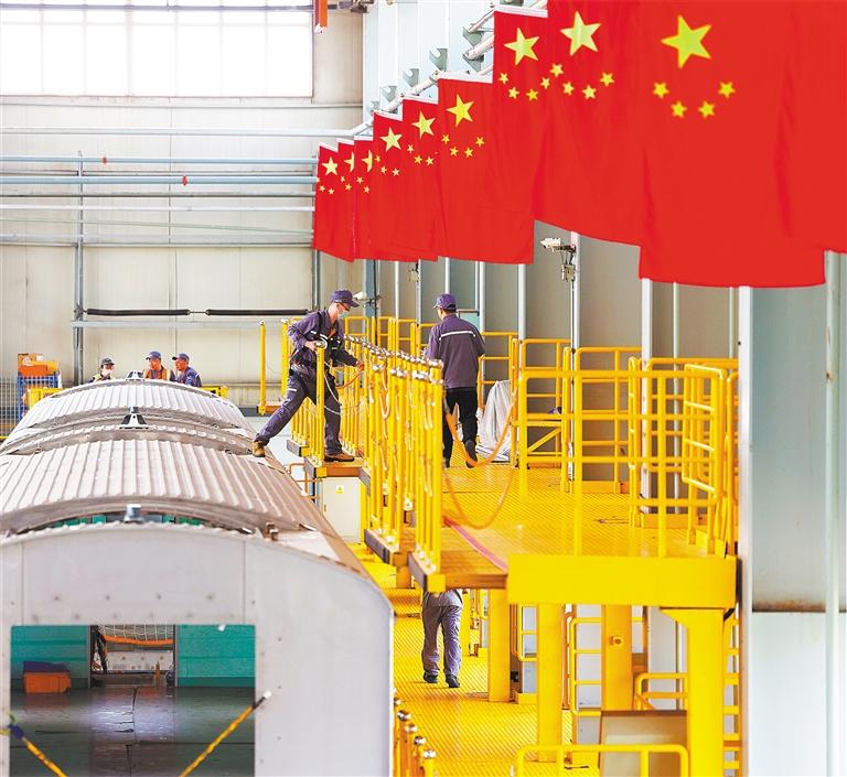 ▲5月28日,中車(chē)長(zhǎng)客國(guó)鐵事業(yè)部制造中心裝配產(chǎn)線(xiàn)組,員工在忙生產(chǎn)。