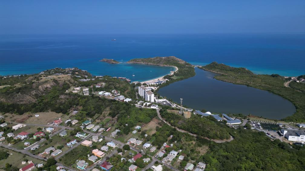 這是2月1日用無人機(jī)拍攝的安提瓜和巴布達(dá)首都圣約翰海岸線一景。新華社發(fā)(里卡多·蒙托亞攝)