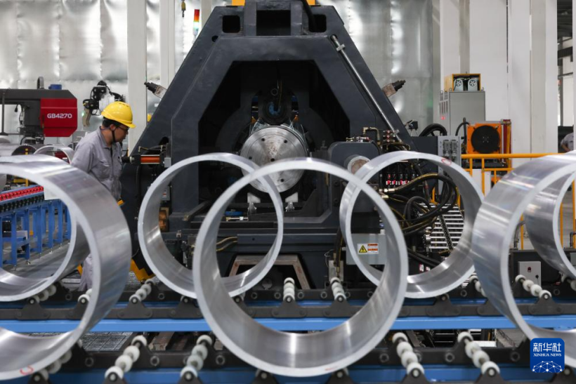 5月31日,一名工作人員在江蘇國(guó)富氫能技術(shù)裝備股份有限公司的儲(chǔ)氫設(shè)備生產(chǎn)車(chē)間內(nèi)作業(yè)。新華社記者 楊磊 攝