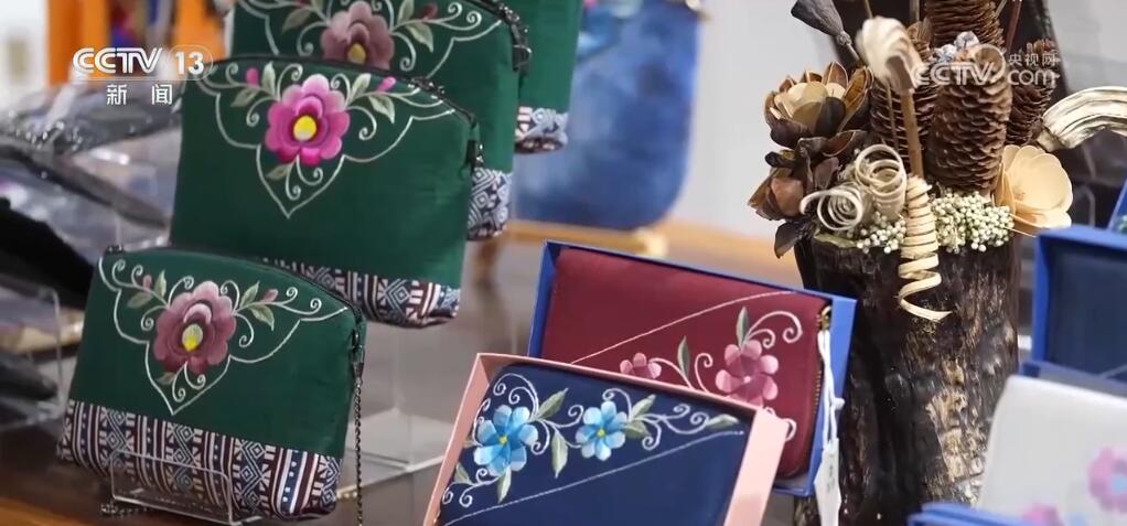 這樣精美的非遺手工藝品,不僅在博物館里能見到,我們?nèi)粘I钜材苡玫蒙?。您現(xiàn)在看到的,就是在楚雄特產(chǎn)店里銷售的成衣、絲巾、背包。這些都是純手工繡出來的。銷售非?;鸨?。)