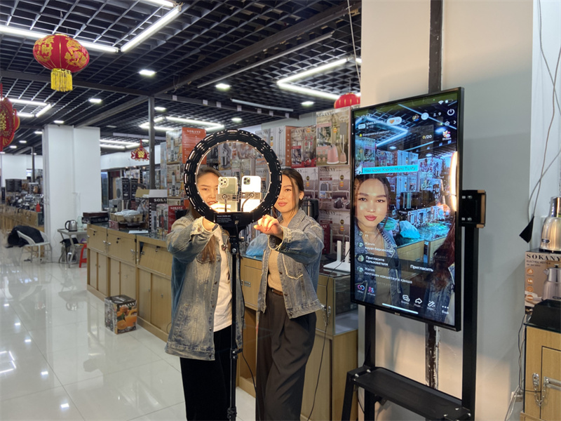 在中國(guó)西部邊境小城霍爾果斯,跨境電商直播如火如荼。