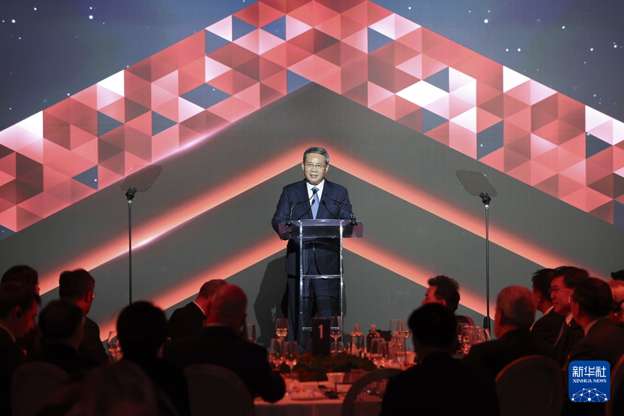 當(dāng)?shù)貢r間6月14日晚,國務(wù)院總理李強在奧克蘭博物館同新西蘭總理拉克森共同出席新西蘭各界舉行的歡迎宴會并致辭。新華社記者 丁海濤 攝