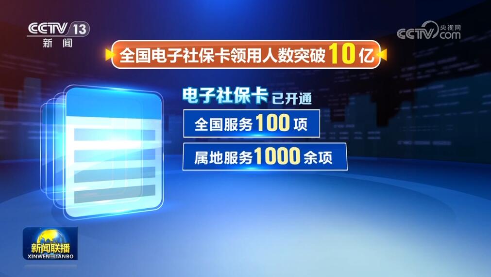 全國(guó)電子社??I(lǐng)用人數(shù)突破10億。電子社??ㄒ验_通全國(guó)服務(wù)100項(xiàng),屬地服務(wù)1000余項(xiàng)。